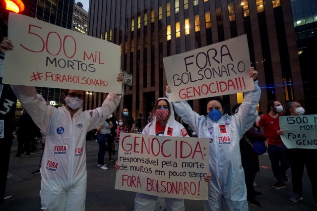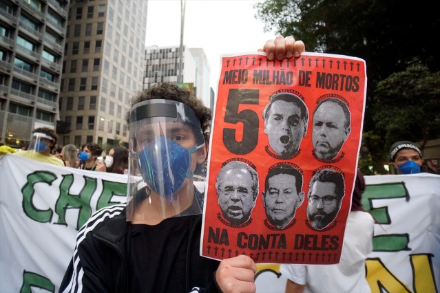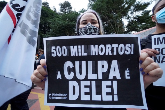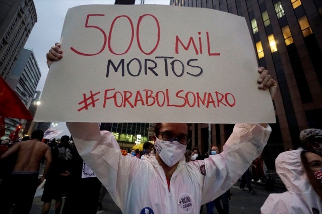 Brezilya'nın birçok şehrinde binlerce kişi, Devlet Başkanı Jair Bolsonaro'ya karşı protesto gösterileri düzenledi. Sao Paulo şehrinde binlerce kişi yeni tip koronavirüs (Kovid-19) kaynaklı ölü sayısının yarım milyonu aştığı Brezilya'da Bolsonaro'nun salgına karşı tutumunu protesto etti. Ülkedeki salgın durumundan Bolsonaro'yu sorumlu tutan göstericiler, devlet başkanının görevinden alınmasını ve yargılanmasını istedi. Göstericiler, ellerinde Bolsonaro karşıtı pankartlar taşıdı, hükümet karşıtı sloganlar attı.