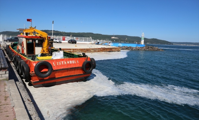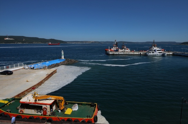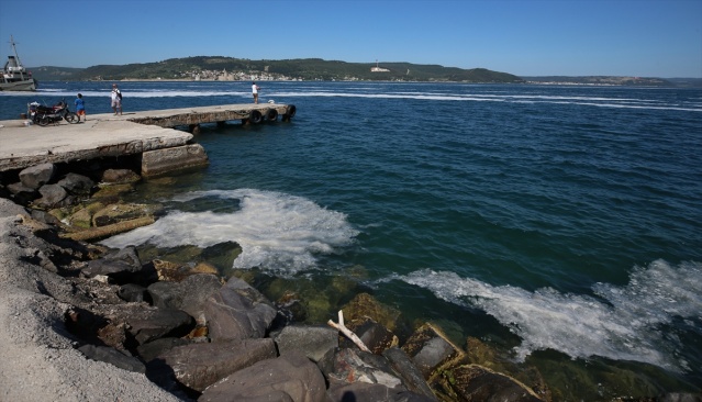 Marmara Denizi sahillerinde görülen ve rüzgarın etkisiyle Çanakkale merkezindeki kıyılara sürüklenen müsilaj (deniz salyası), boğaz ve çevresindeki alanlarda yoğunlaştı.