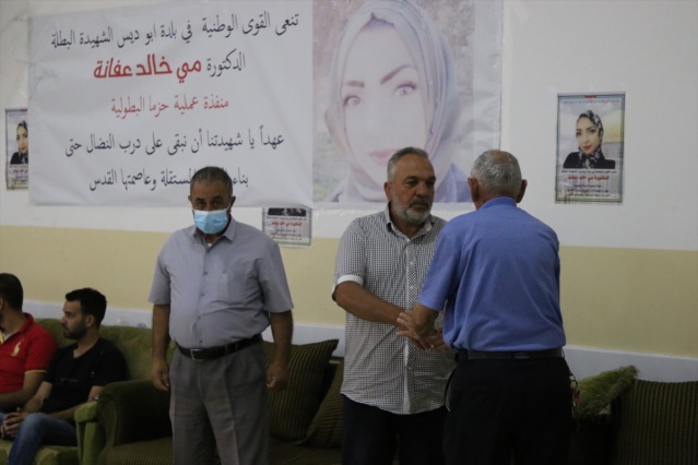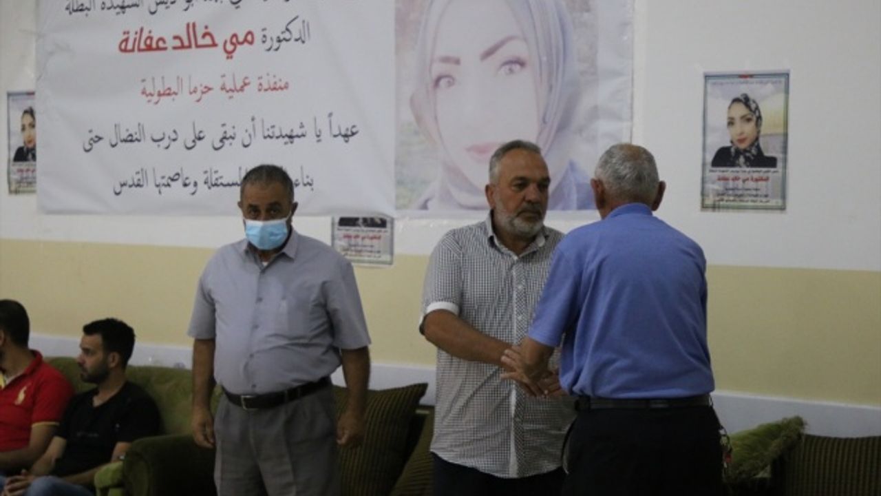 İsrail askerlerinin açtığı ateş sonucu hayatını kaybeden genç akademisyen Mey Affane için işgal altındaki Batı Şeria'nın Ramallah kentinde taziye merasimi düzenlendi. Taziyeleri, Mey Affane'nin babsı Halid Affane (sağ 3) kabul etti.