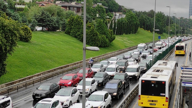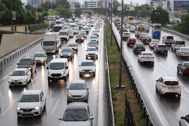İstanbul'da yağış trafiği olumsuz yönde etkiliyor. Anadolu Yakası'nda yağış nedeniyle D100 Karayolu'nda trafik yoğunluğu oluştu.
