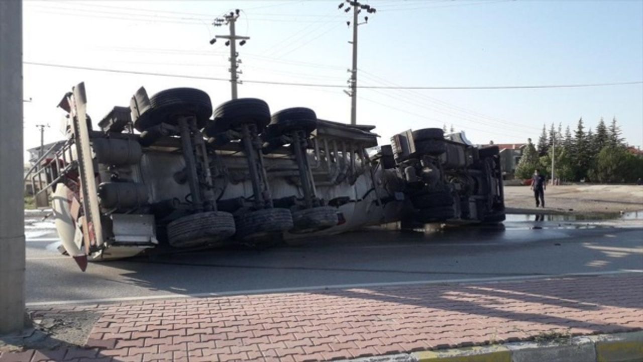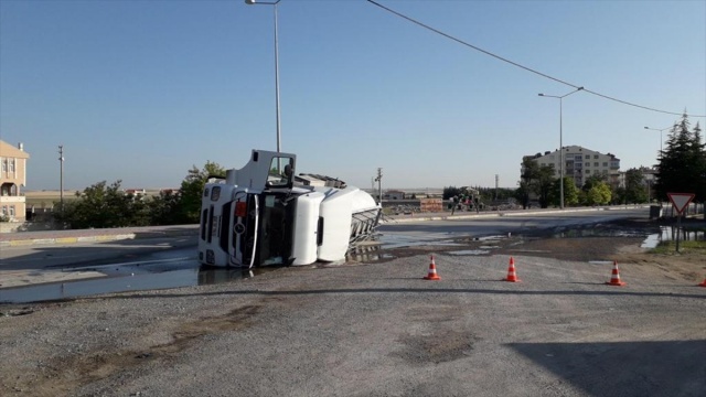 Konya'nın Kulu ilçesinde devrilen mazot mazot yüklü tankerin sürücüsü yaralandı.
