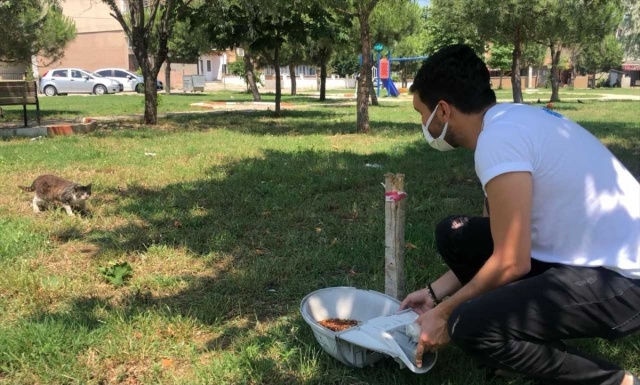 Mama ve su kapları TREDAŞ gönüllülerince içlerine su ve mama konularak kentte belirli noktalara bırakılıyor.