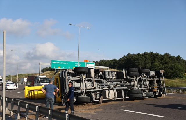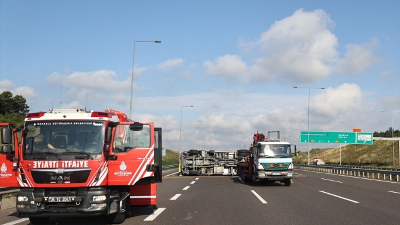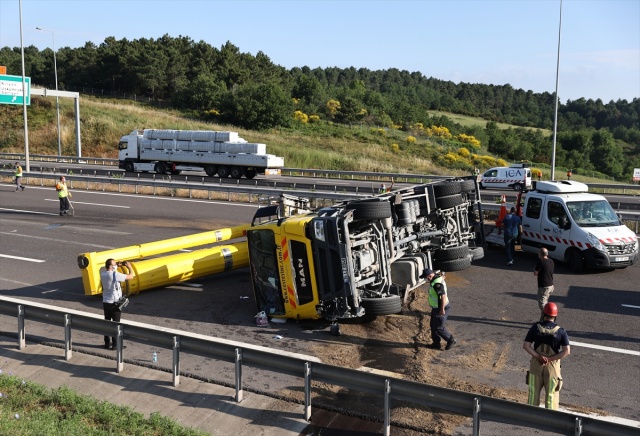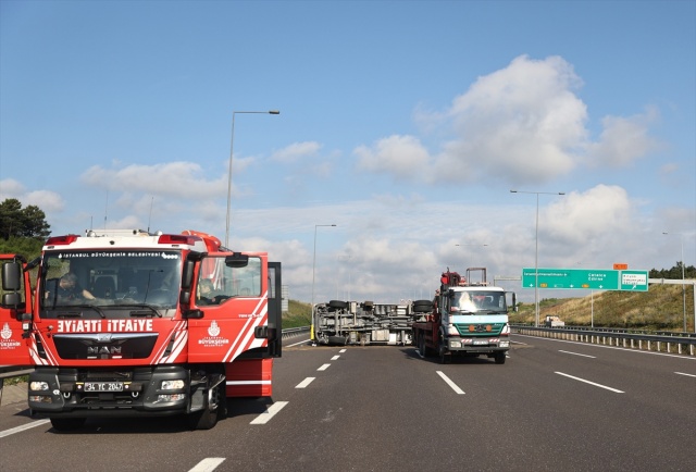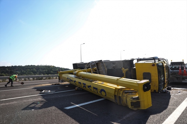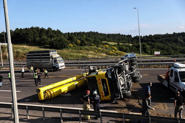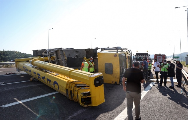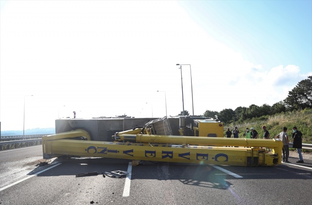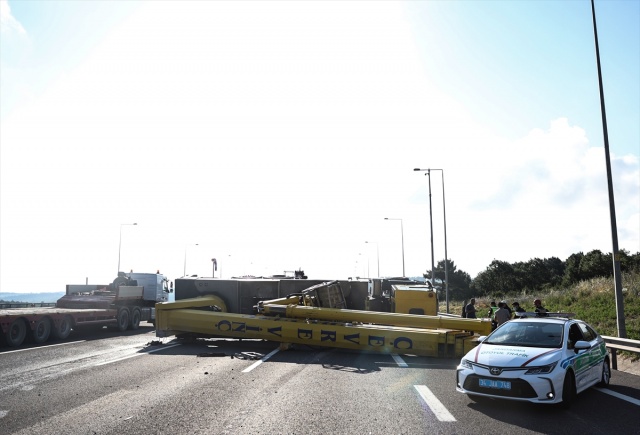 Kuzey Marmara Otoyolu'nda Sarıyer mevkisi Ankara yönünde vinç devrildi.