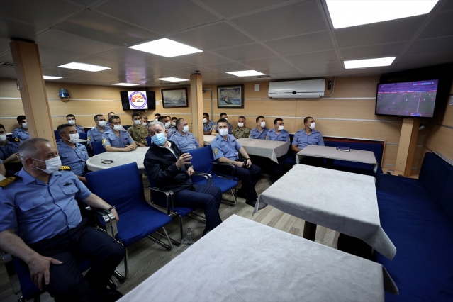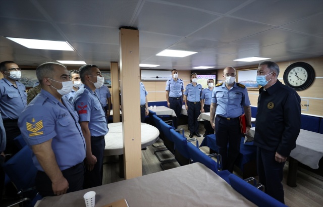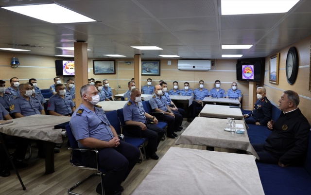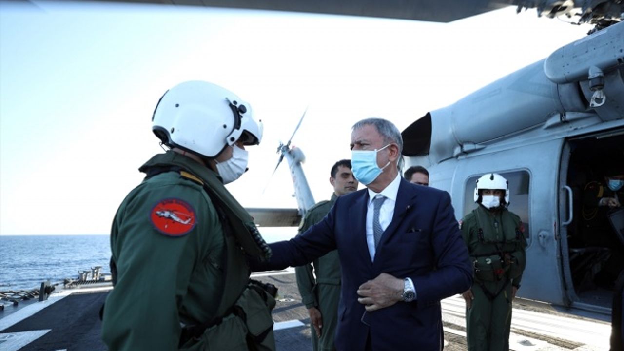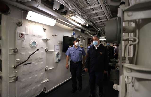 Milli Savunma Bakanı Hulusi Akar, helikopterle Libya açıklarındaki TCG Gelibolu firkateynine giderek faaliyetlere ilişkin bilgi aldı, personelle birlikte yemek yedi.