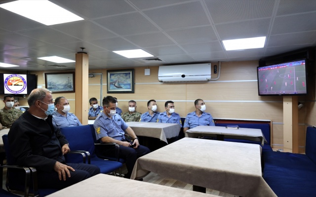 Milli Savunma Bakanı Hulusi Akar, helikopterle Libya açıklarındaki TCG Gelibolu firkateynine giderek faaliyetlere ilişkin bilgi aldı, personelle bir araya geldi. Akar daha sonra bahriyelilerle Libya açıklarındaki gemide A Milli Futbol Takımı’nın 2020 Avrupa Şampiyonası'nda ev sahibi İtalya ile oynadığı açılış maçını televizyondan izledi.