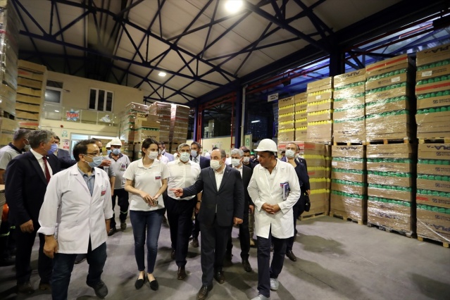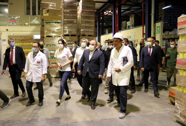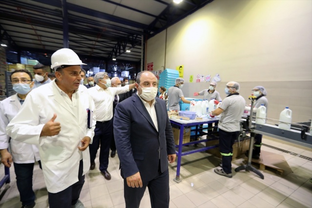 Kırıkhan OSB'deki incelemelerinin ardından bölgenin en büyük temizlik malzemeleri üretim tesisi Koruma Temizlik AŞ'yi ziyaret eden Sanayi ve Teknoloji Bakanı Mustafa Varank, burada yetkililerden bilgi aldı.