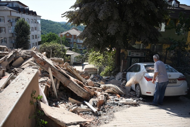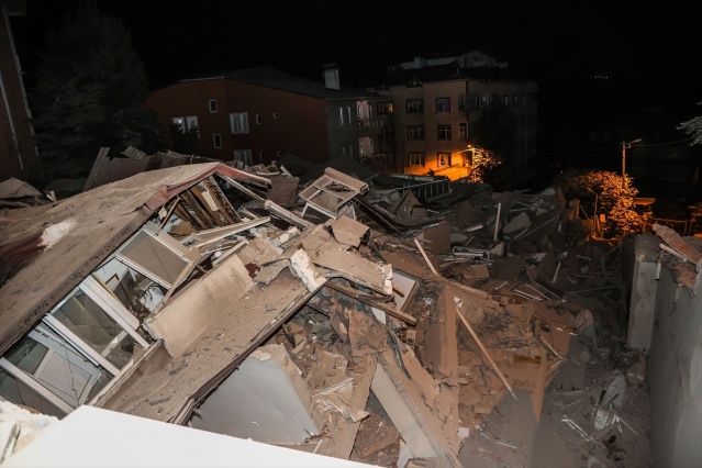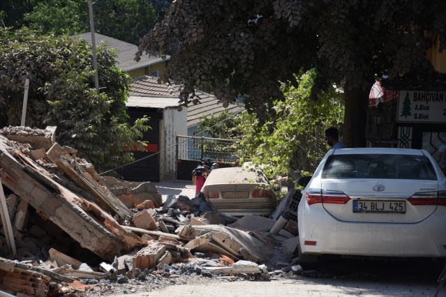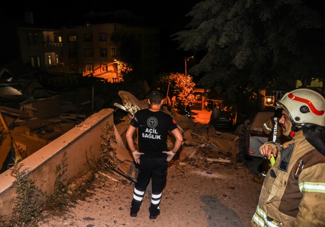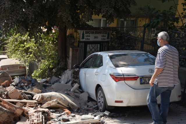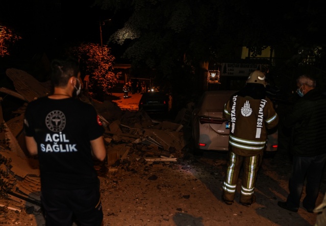 Sarıyer'de 11 katlı boş binanın çökmesi sonucu civarda park halindeki 3 otomobilde hasar oluştu.
