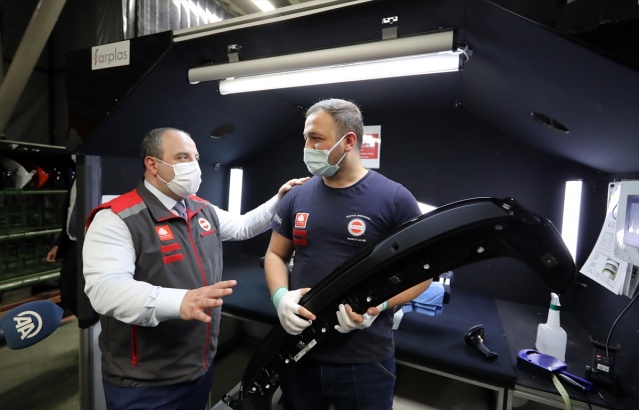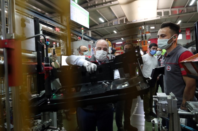 Sanayi ve Teknoloji Bakanı Mustafa Varank, Kocaeli'de bulunan Otomotiv Tedarik Sanayi İhtisas Organize Sanayi Bölgesi'nde (TOSB) incelemelerde bulundu. Otomobiller için iç ve dış plastik bazlı kompleks parçalar üreten Farplas Otomotiv'i ziyaret eden Varank, Fark Holding Üst Yöneticisi Ömer Burhanoğlu'ndan yürütülen çalışmalarla ilgili bilgi aldı.